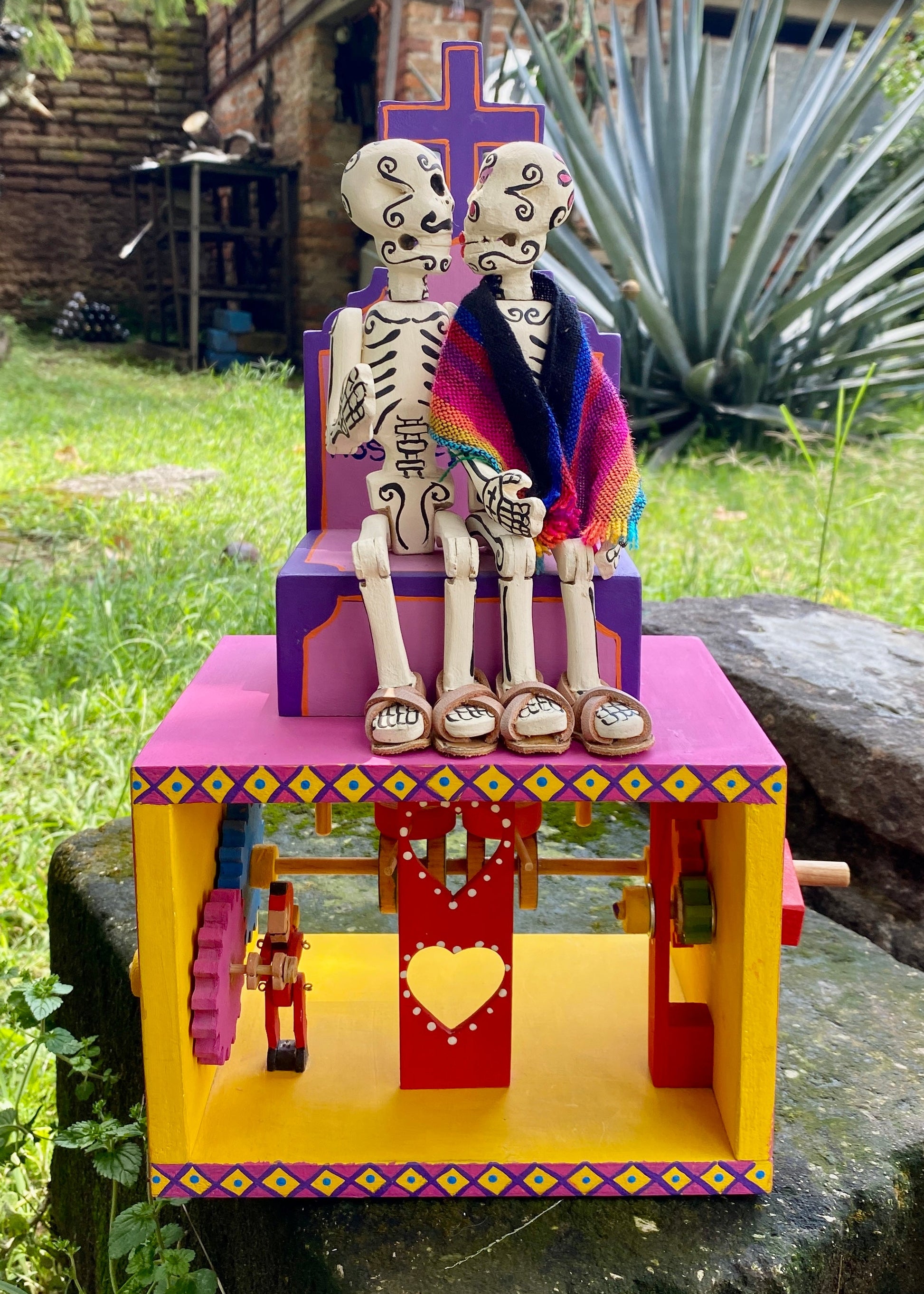 Eterno Amor son una pareja de novios de madera,que al girar la manija voltean su cabeza para darse un beso, en la parte de adentro de la cajita está un diablito que al girar la manija ayuda a dar vuelta a los engranes, en una pieza hecha a mano con mucha presición digna de er parte de una colección de juguetes artesanales finos.